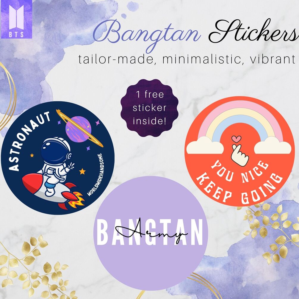 Upon downloading, you'll get a ZIP folder with 4 items. 3 of them being the BTS-inspired stickers, and 1 free mystery sticker. You'll receive all these stickers as 'image' files. All the stickers are pre-cut, so all you have to do is download and use right away!