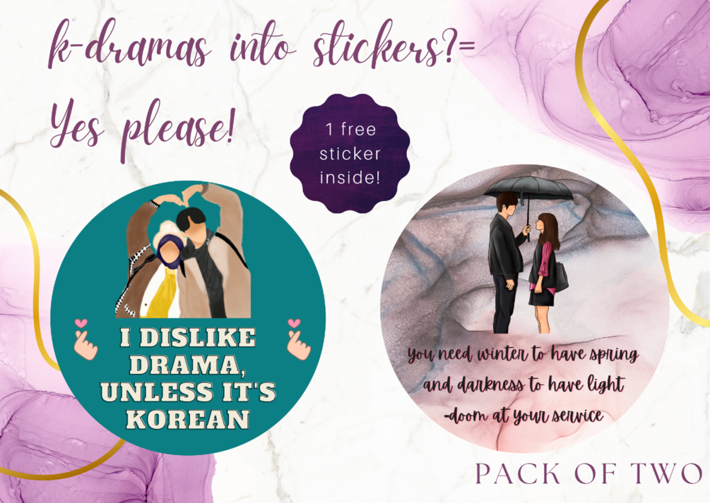 Introducing the Digital K-Drama Stickers Set of 2, a delightful collection of digital stickers inspired by your favorite Korean dramas! Add a touch of K-Drama flair to your messages and social media posts with these fun and vibrant stickers. Whether you're reliving iconic moments, or simply spreading some K-Drama joy, this sticker set has you covered. Best of all, it's available as a free digital download, so once you download it, you can readily use it for your digital notes or you can print them out and use them to your liking~